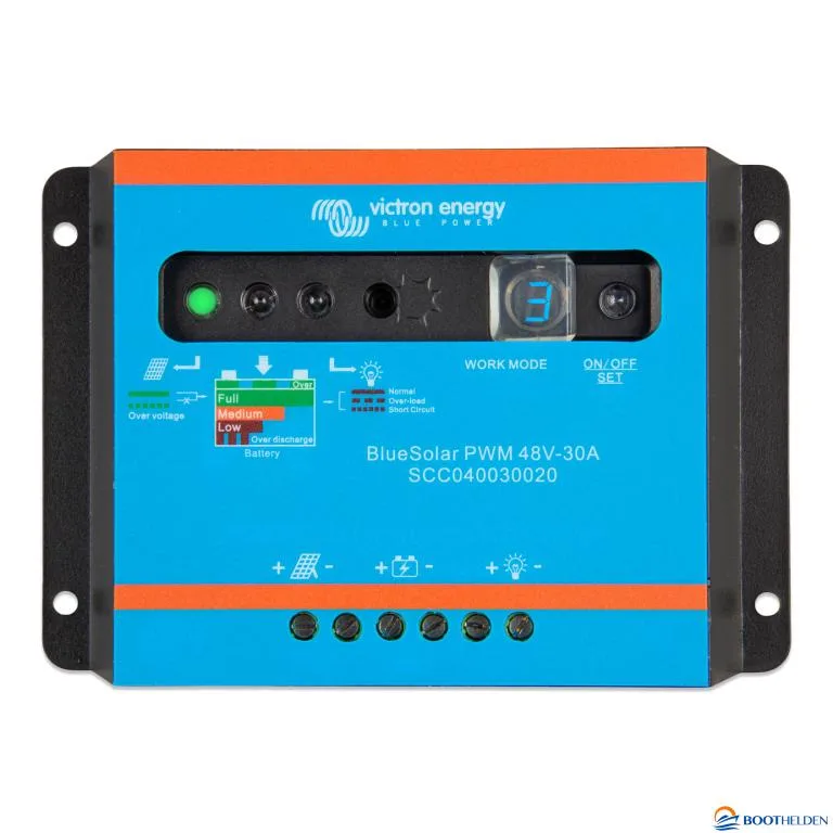 Solar laadcontrollers zijn noodzakelijk om te voorkomen dat de accu’s worden overladen. De standaard PWM laadregelaar schakelt de zonnecellen af wanneer de juiste laadspanning is bereikt. Geschikt voor kleinere systemen.