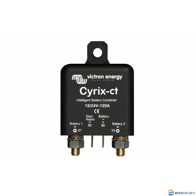 De Cyrix accuscheider is een door een microprocessor gestuurd relais voor zware toepassingen die accu’s automatisch parallel schakelt als één van de accu’s de vooraf ingestelde spanning heeft bereikt (waarmee wordt aangegeven dat de accu wordt opgeladen) en deze loskoppelt als de spanning onder het druppellaadniveau daalt (waarmee wordt aangegeven dat één of meer accu’s worden ontladen). Cyrix accuscheiders zijn een uitstekend alternatief voor diodelaadstroomverdelers. De hoofdeigenschap is dat het spanningsverlies praktisch nihil is, waardoor de uitgangsspanning van dynamo’s of acculaders niet verhoogd hoeft te worden.