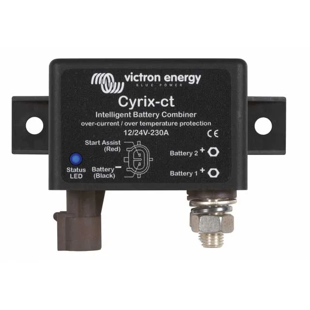 De Cyrix accuscheider is een door een microprocessor gestuurd relais voor zware toepassingen die accu’s automatisch parallel schakelt als één van de accu’s de vooraf ingestelde spanning heeft bereikt (waarmee wordt aangegeven dat de accu wordt opgeladen) en deze loskoppelt als de spanning onder het druppellaadniveau daalt (waarmee wordt aangegeven dat één of meer accu’s worden ontladen). Cyrix accuscheiders zijn een uitstekend alternatief voor diodelaadstroomverdelers. De hoofdeigenschap is dat het spanningsverlies praktisch nihil is, waardoor de uitgangsspanning van dynamo’s of acculaders niet verhoogd hoeft te worden.