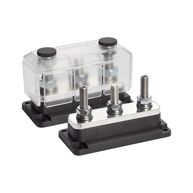 Modulaire protectie en distributie oplossingen voor hoge DC stromen. Creëer ruimte besparende clusters van zekeringhouders en busbars. Installeer snel, gemakkelijk en veilig.
