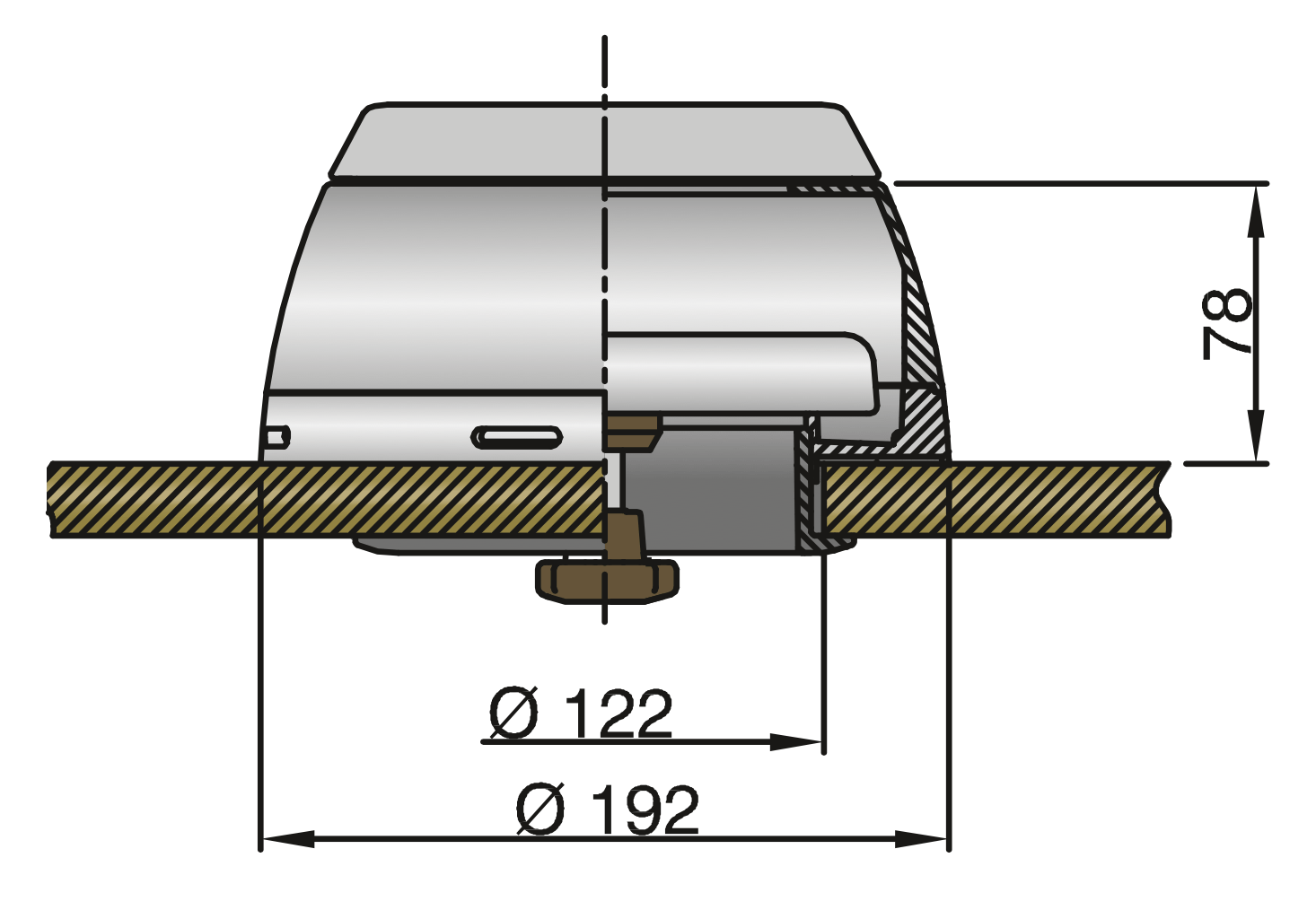 Doradebox van kunststof voor luchthapper Ø100mm. Maximale dekdikte 25mm. Voert water af dat via de luchthapper binnenkomt. Ook geheel afsluitbaar door middel van ingebouwde RVS (AISI 316) paddenstoelventilator.