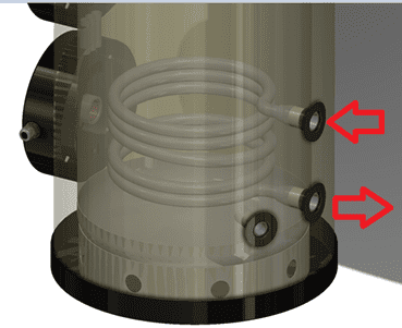 Behuizing in PVC en composietmateriaal en tank in RVS316, met warmtewisselaar.