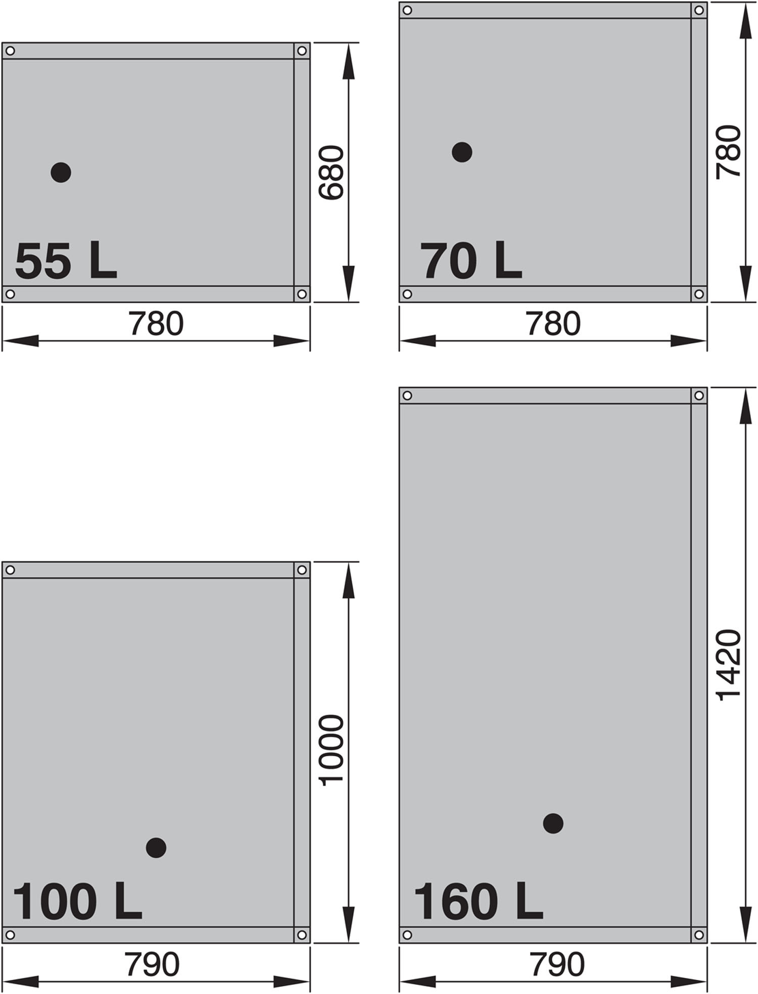 - Afmetingen (L x B x H): 1000 x 790 x 300 mm (afmetingen kunnen afwijken, de tank past zich aan aan de ruimte waarin hij geplaatst wordt.)