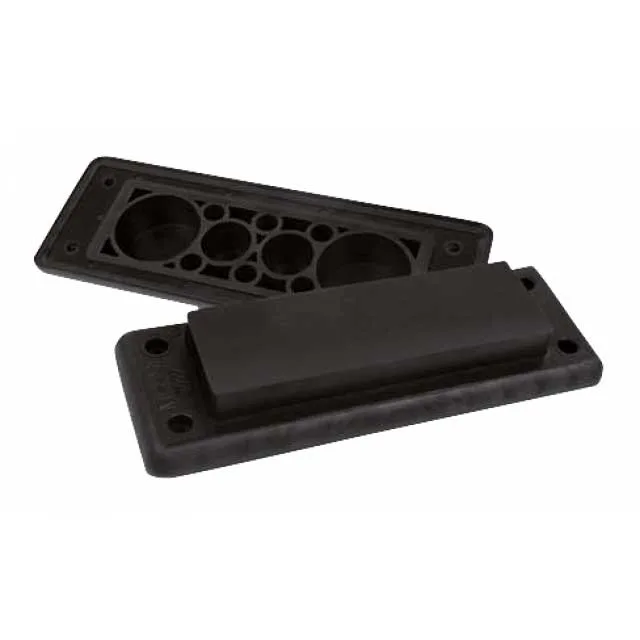 MH 10 Multigate is geschikt om kabels of slangen van verschillende diktes door te voeren en is IP55 spuitwaterdicht. De uitsnede komt overeen met de standaard afmeting voor 24-polige industriële connectoren. De MH-10 is gemaakt van halogeenvrije polymeren welke bij brand minder rook produceren.