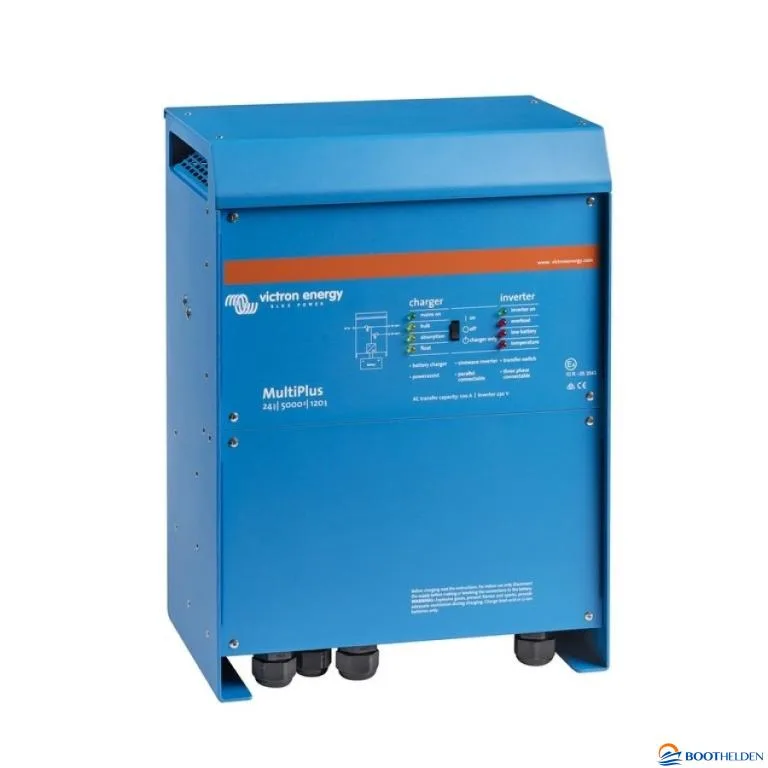 De Victron MultiPlus 24/5000 is zowel een acculader als een omvormer. De Victron MultiPlus 24/5000 biedt een continu vermogen van 5000VA en een piekvermogen van 10.000W. De acculader beschikt over een laadstroom van 120 ampère. De Victron MultiPlus serie is voorzien van twee AC-uitgangen.