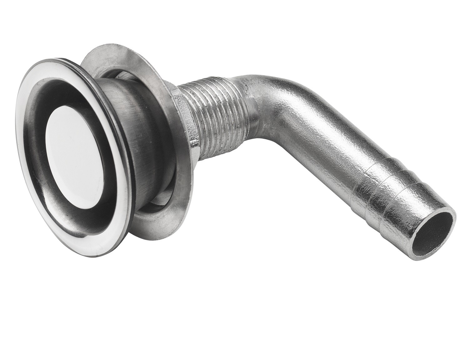 Ontluchtingsnippel haaks AISI316 slangdia.16mm flush