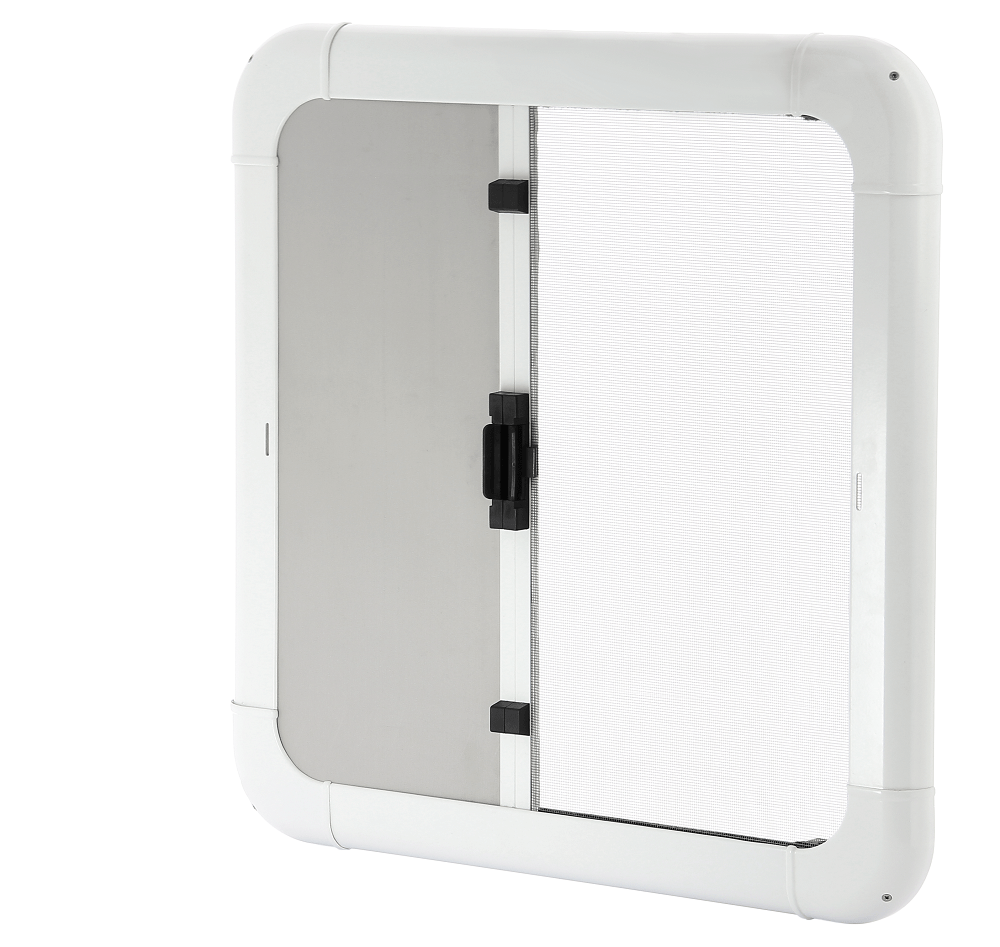Een combinatie van rolhor- en verduistering, speciaal ontworpen voor vlucht- en ventilatieluiken. Slank ontwerp met optimaal zicht, met aangepaste hoeken voor een langere levensduur. Voorzien van een sterke en goed bereikbare veer die handmatig op spanning kan worden gebracht. Het luik wordt verduisterd door de hendel naar de ene kant te ‘swipen’. Door de hendel naar de andere kant te ‘swipen’ rolt het verduisteringsgordijn op en komt de hor tevoorschijn. De magnetische hendel kan worden losgemaakt om zowel het gordijn als de hor in te laten rollen.