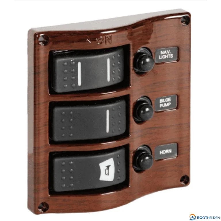 Schakelpaneel is beschikbaar in antraciet of in mahony look: 3, 5 of 8+1 socket 12V schakelaars.