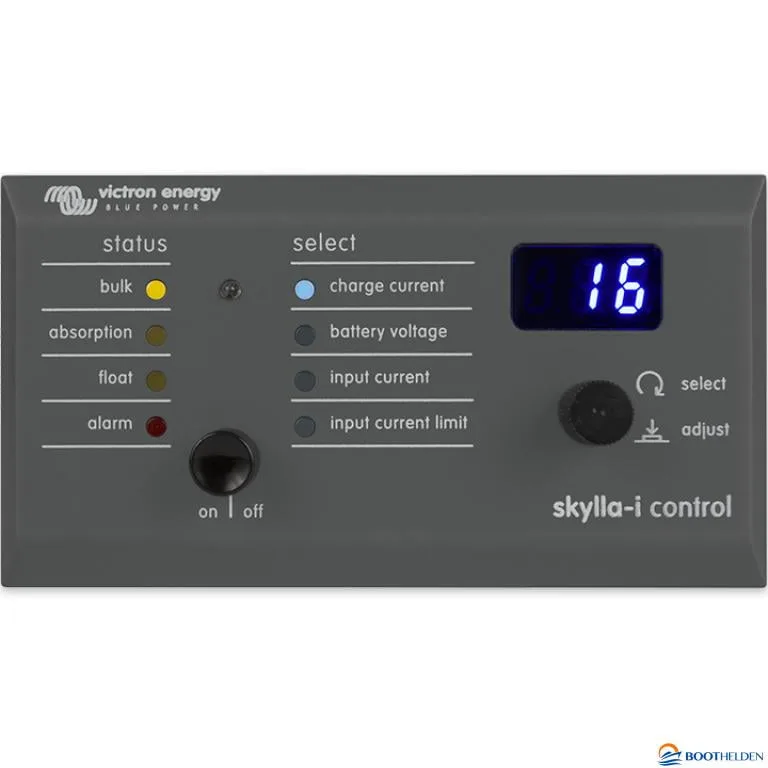 De Skylla-i Control GX maakt het mogelijk om de laadstroom van een Skylla-i acculader aan te passen en de status van het systeem af te lezen. Doordat u de mogelijkheid heeft om de laadstroom aan te passen, beperkt u de ingaande stroom vanaf de walaansluiting wat vervolgens weer voorkomt dat de walstroom zekering het zal begeven.