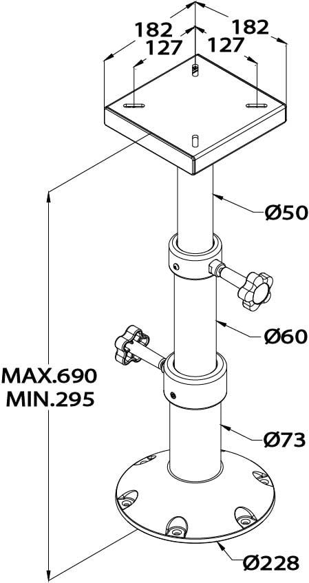 Tafelpoot telescopisch hoogte 295-690mm | Vetus PCMS2969