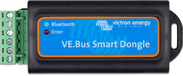 De VE.Bus Smart-dongle is uitgerust met Bluetooth Smart-technologie en functioneert als een VE.Bus-interface met de mogelijkheid om de temperatuur en spanning van batterijen te meten. Het apparaat stuurt systeeminformatie direct naar uw smartphone via de VictronConnect-app, die gratis te downloaden en te gebruiken is.