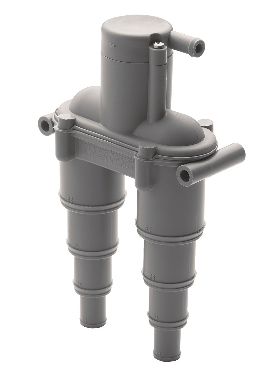 Beluchter met hoogwaardige onafhankelijke beluchtingsklep. Geschikt voor slangen met een diameter van 13, 19, 25 of 32 mm.
