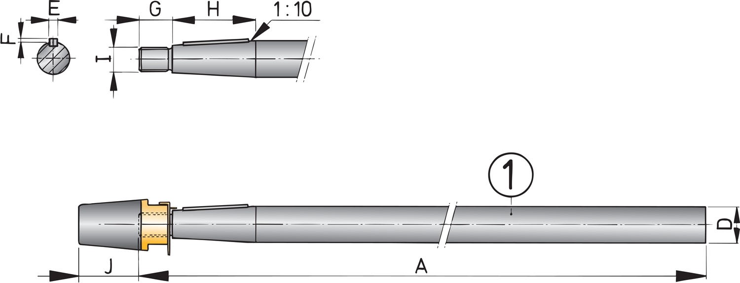 Één eind van de schroefas is standaard voorzien van een conus, een spiebaan, de bijbehorende spie en een dopmoer met geïntegreerde zinkanode en borgring.